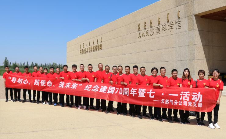 在迎來祖國母親的70歲生日之際,為提醒和倡導(dǎo)廣大黨員不忘中國共產(chǎn)黨的光輝歷史,不忘艱苦樸素吃苦耐勞的精神,進(jìn)一步增強(qiáng)黨支部的凝聚力和戰(zhàn)斗力,充分發(fā)揮黨員的先鋒模范作用。天然氣分公司黨支部于2019年7月2日組織開展了以“尋初心、踐使命、筑未來”為主題的紀(jì)念建國70周年暨七?一活動。